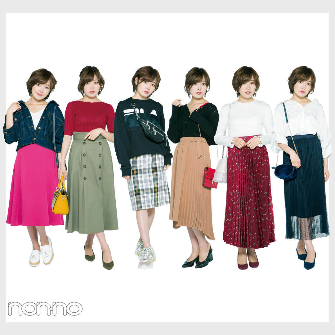 身長160cmの読モが秋のトレンドスカートを6着着比べ!