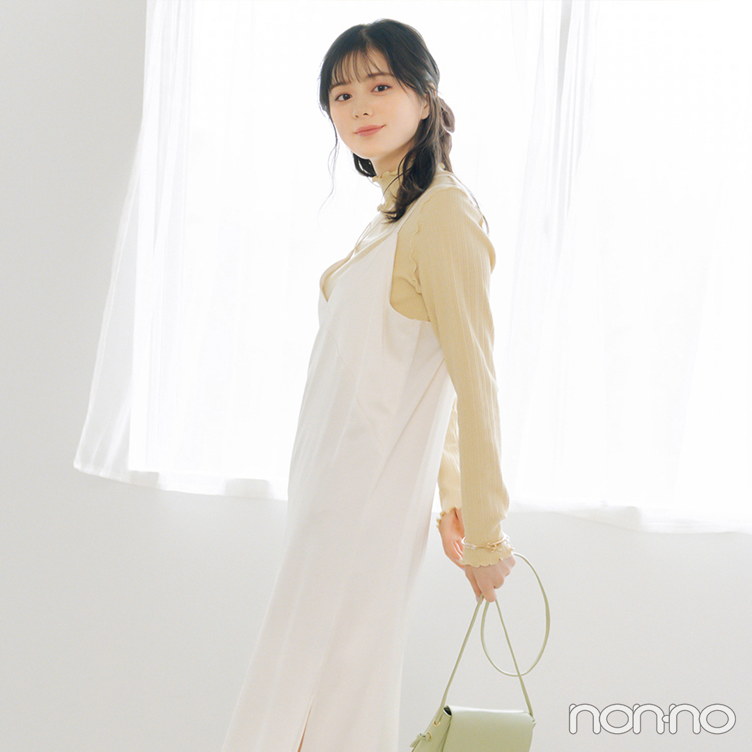 ベスト(シャツとセット)¥9900/MURUA スカート¥9900/バロックジャパンリミテッド(rienda) カチューシャ¥9900/THE HAIR BAR TOKYO(ジェニファーオーレット) バッグ¥57200/アー・ペー・セー カスタマーサービス
