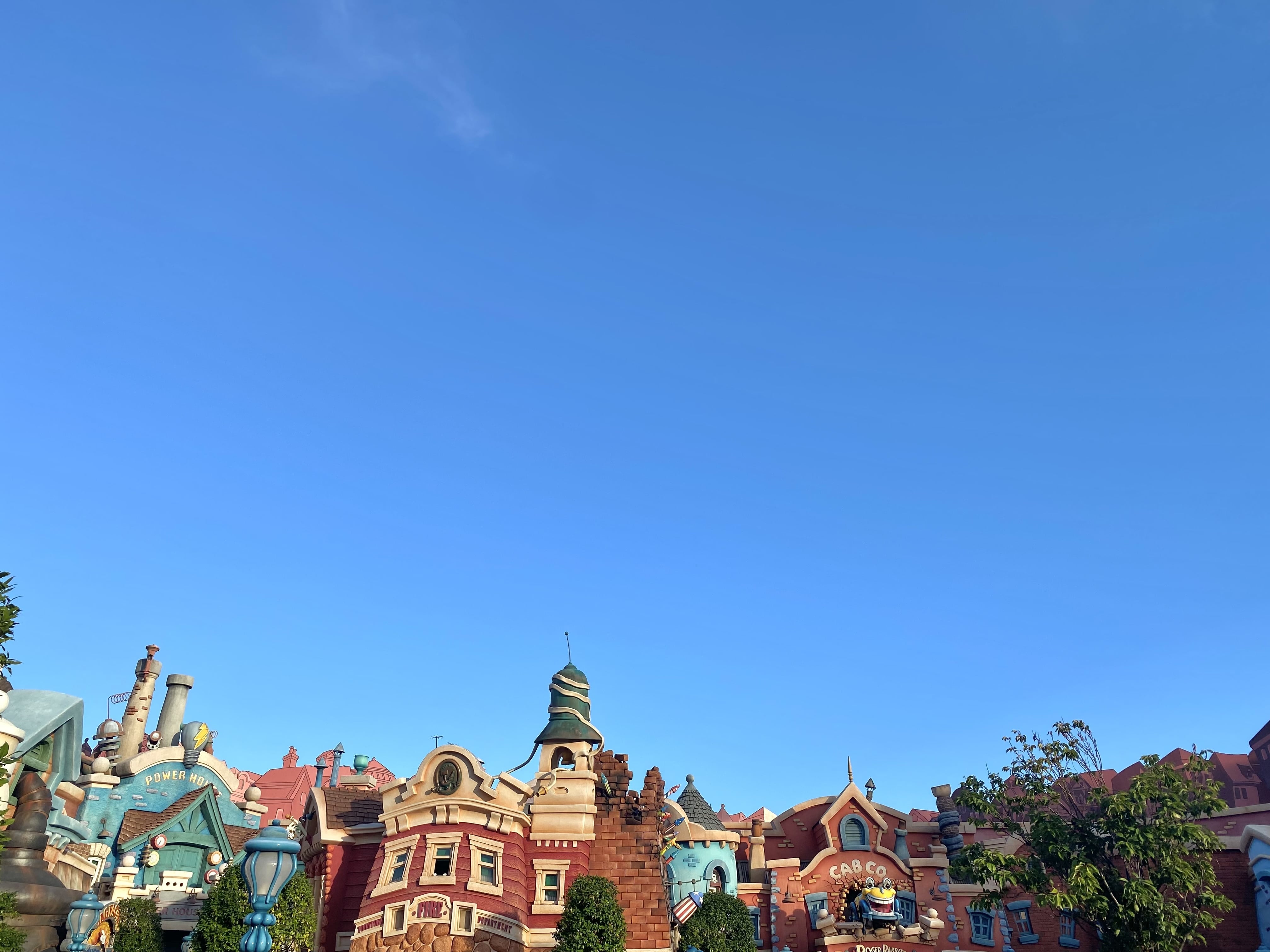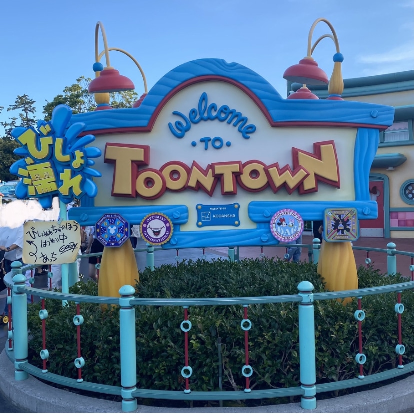 トゥーンタウンの入口付近ではびしょ濡れにならないのですが、このように、ロジャーラビットのカートゥーンスピンがある奥の方へと進んでいくと、一帯が