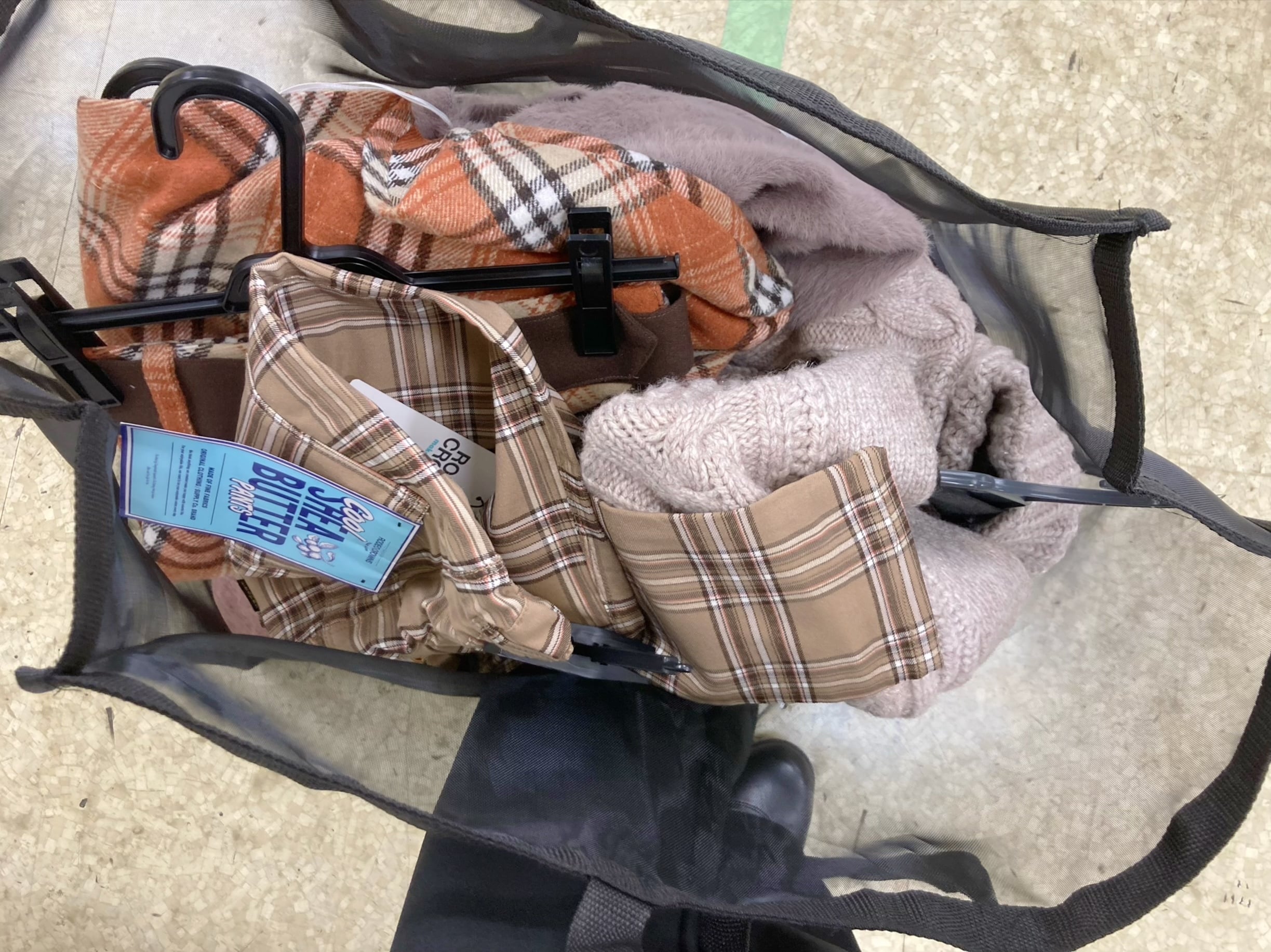 大きなショッピングバッグを渡されて、お洋服をかき分けかき分け素敵なものを探します。私はかなり優柔不断なので、重くなりすぎたら選別しよう……と思って、ちょっとでも気になったものはとりあえずキープすることに。