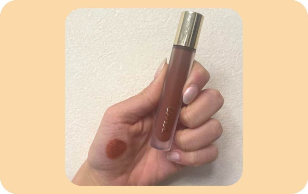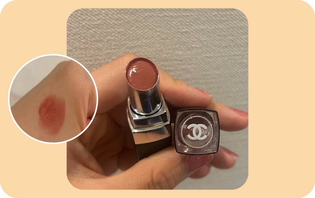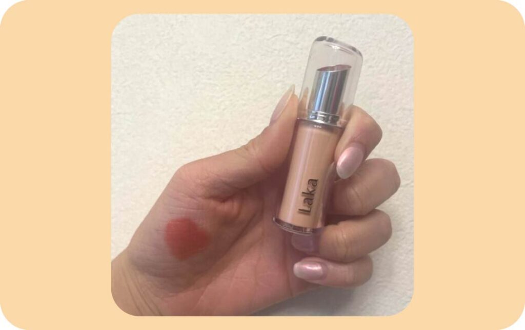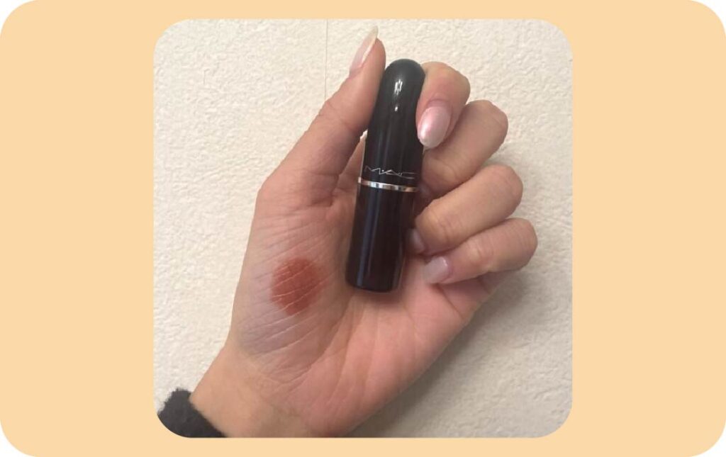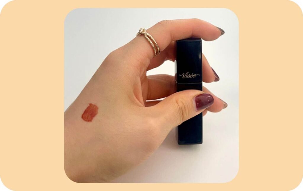 ツヤ感のあるオレンジブラウン。程よく赤みが入っているからか、オレンジが似合いづらいブルべ肌にも浮かずになじむ!とろけるようなテクスチャで塗り心地も快適♪