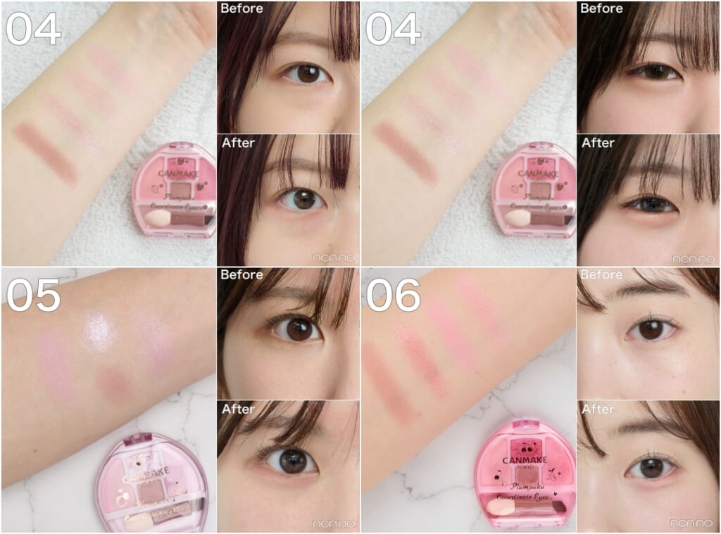 うしさんさん:前回発売した時も思ったけど、やっぱり「04」のイチゴカラー可愛い! とくにパレットの真ん中が絶妙なピンクブラウン。血色影カラーというだけあって、涙袋の影がふわっと自然に見える♡