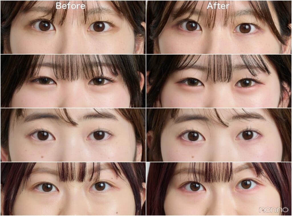 りんさん:マット、パール、ラメ、血色影カラーを順番に使うだけでここまで立体感が出せるのってすごいよね! あと今まで「クリーミータッチライナー」は上まぶたのアイラインに使ってきたけど、今回のお試しで今後は下まぶたにも使ってみたいなって思った。アイシャドウを下まぶたのキワに入れるよりも色もちがよさそうじゃない?