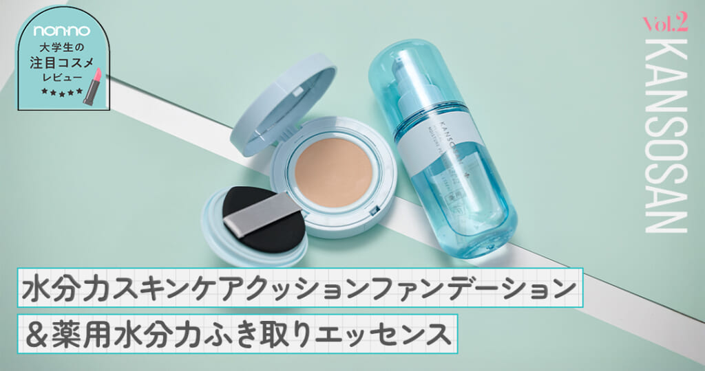 連載第2回は『乾燥さん』。みずみずしい保水ケア成分を配合している“水分力ライン”の新作、「水分力スキンケアクッションファンデーション」と「薬用水分力ふき取りエッセンス」をレビュー!