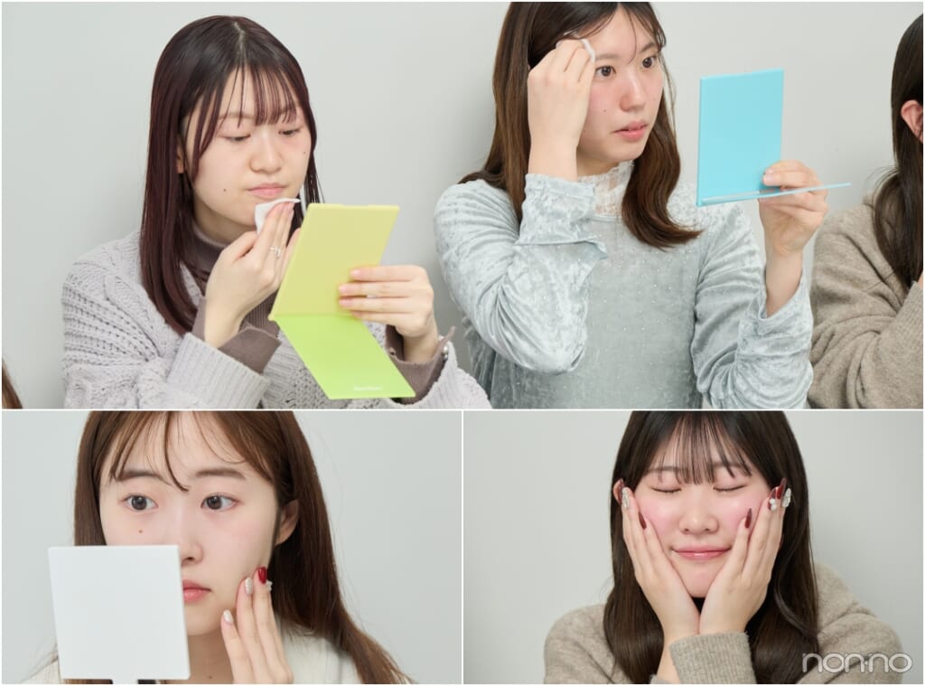 咲希さん:ふき取り終わったら軽くなじませて、いつものスキンケアをするみたいだけど……。すでに肌がしっとりしてて感動!