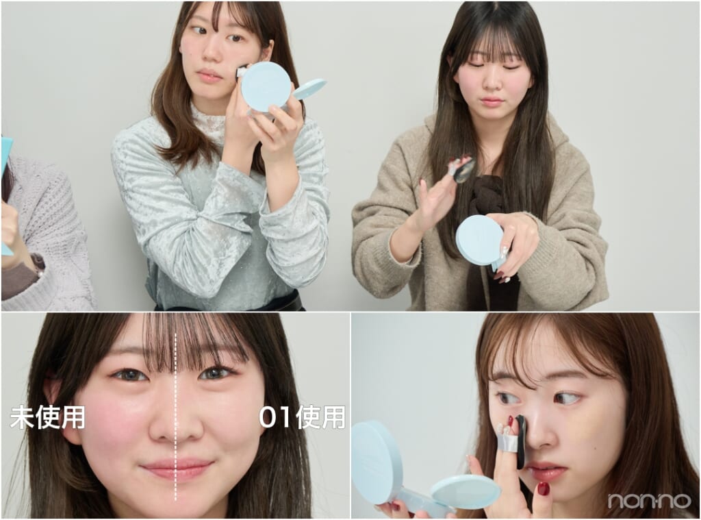 咲希さん:でもパフに対して均一につくからムラにならないのはうれしいな。それにパンパンパンってどんどんタッピングしていくとなじむよ。保湿力をしっかり感じられて、フレッシュなツヤ感が!