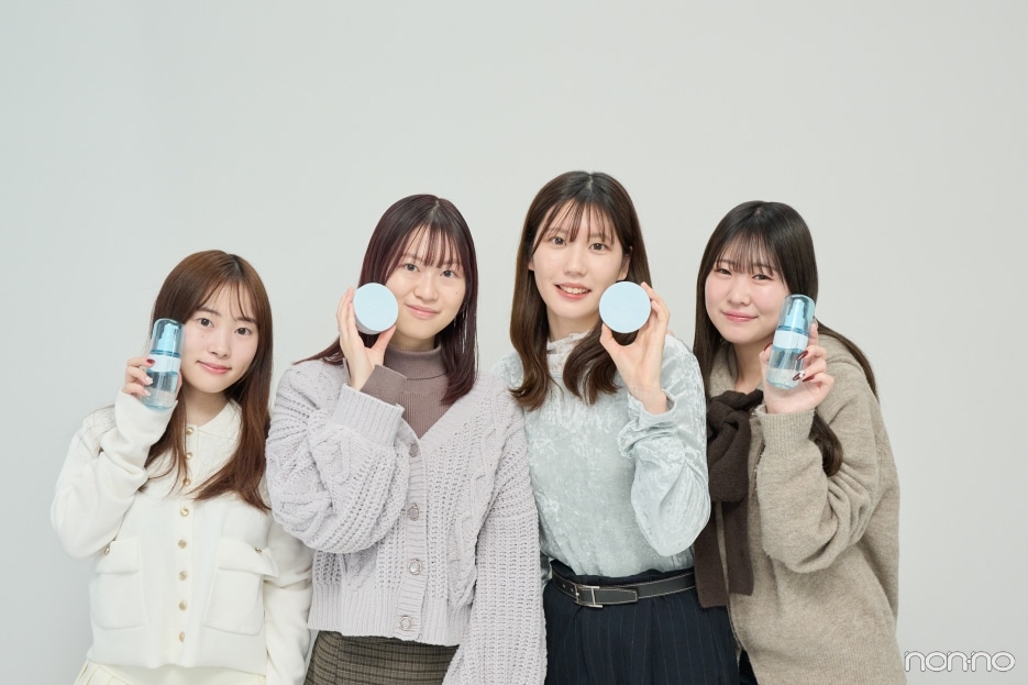 今回お試ししてくれるのは日頃からベースメイクにクッションファンデを使用しているこちらの4人。肌タイプや気になる肌悩み、愛用しているアイテムは?