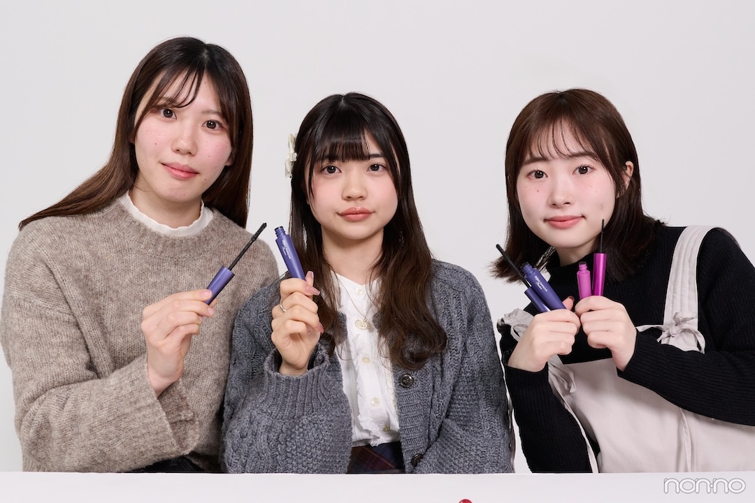 今回お試ししてくれるのはこちらの3人。マスカラ選びのこだわりや仕上がりの好み、愛用しているマスカラは?