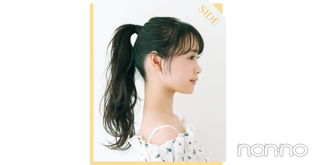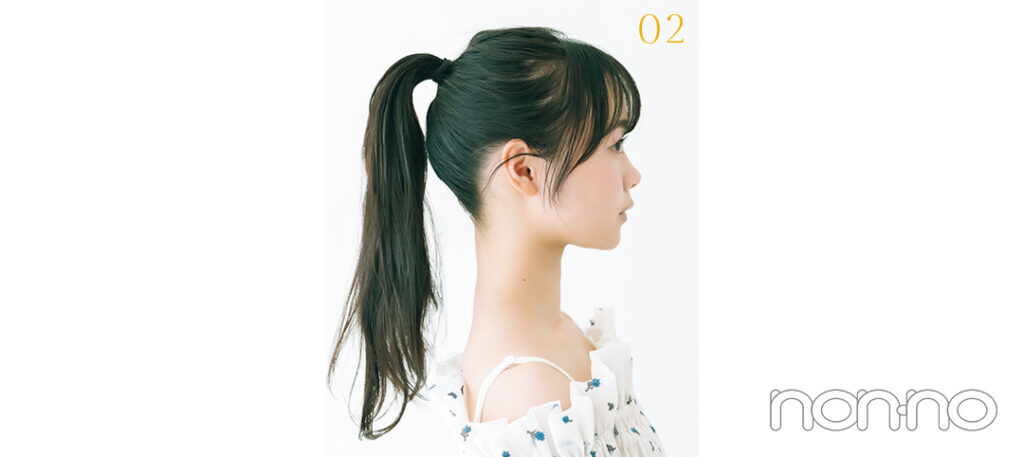 高い位置でポニーテールに