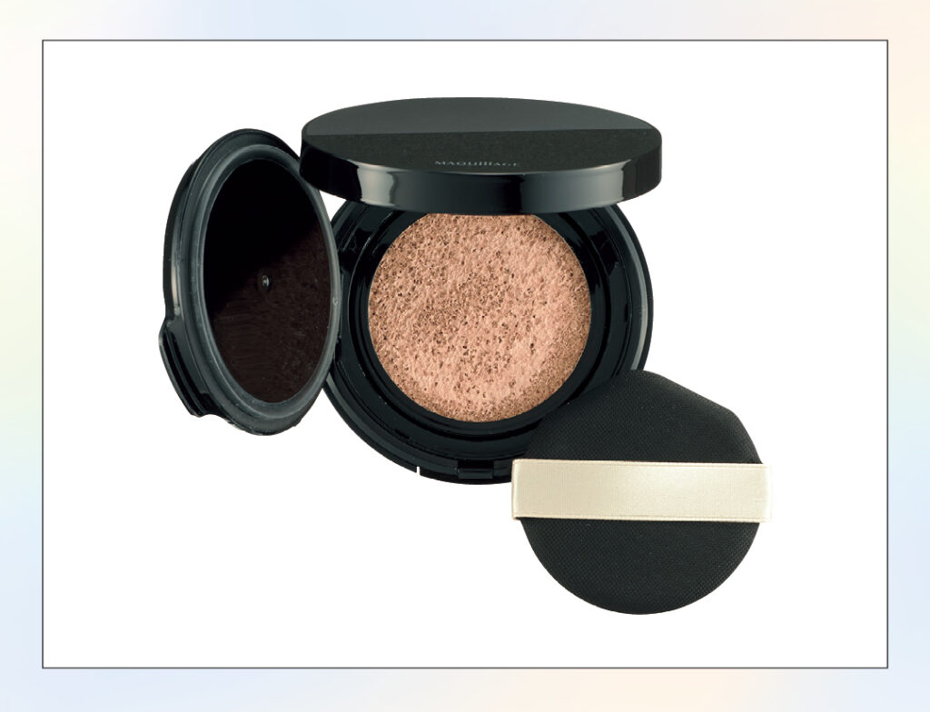 ドラマティックエッセンスクッション グロウ SPF50+・PA++++¥3520(専用パフつき)・クッションファンデーション用ケース¥1100(ともに編集部調べ)/マキアージュ