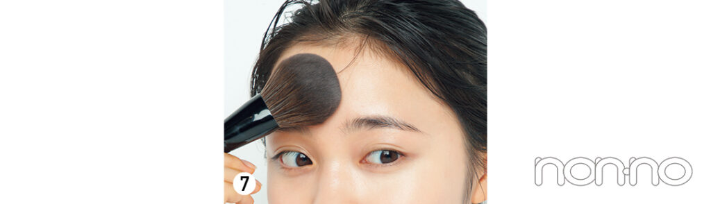 片側の頬〜アゴに。③同様につけ足し反対側、また足しておでこ&鼻に。