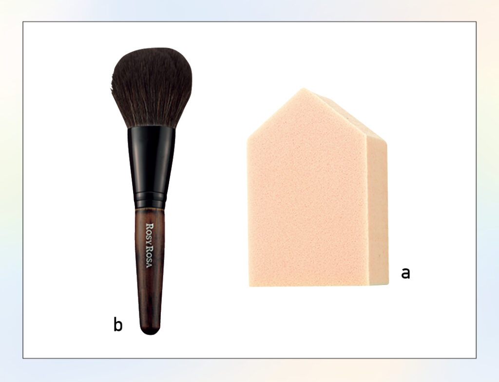 パウダーをbにまんべんなく含ませ、手の甲で余分な粉をオフしてなじませる。