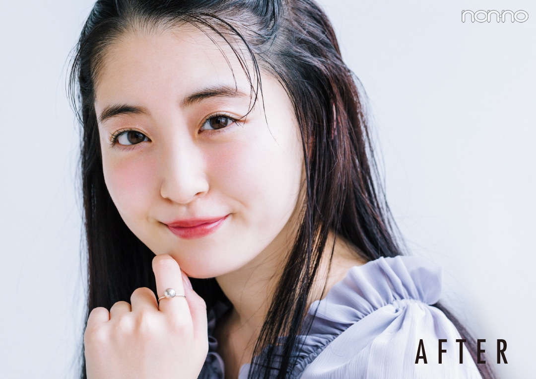 血色感って、女の子を可愛く見せてくれる大切なポイントなんですね。仕上がりの雰囲気自体はすごくナチュラルなのに、きちんとメイク感もあって理想的。このメイク、自分でも毎日チャレンジしてみたいです! by白井さん