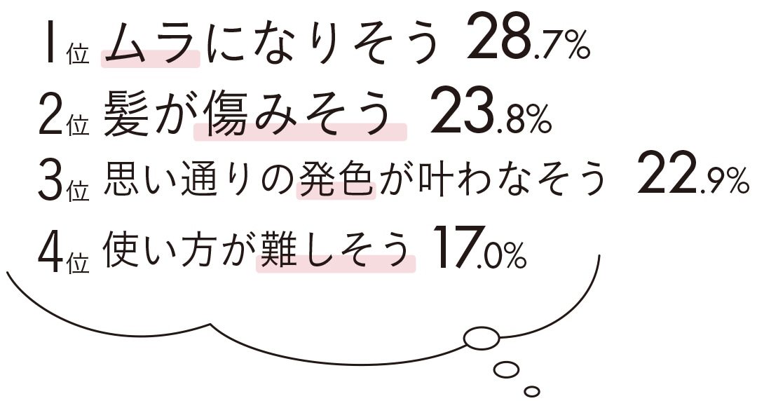 「美容院に行くより値段が圧倒的に安い」「サロンの予約や出かける手間が省けて、自分の都合に合わせていつでも染められる。忙しい人にはおすすめ♪」。コスパのよさや手軽さに惹かれてトライした、という声が。