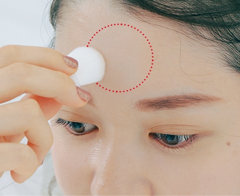 パールなしのハイライトをおでこの中心にピンポン球サイズに入れて、光を集めよう。