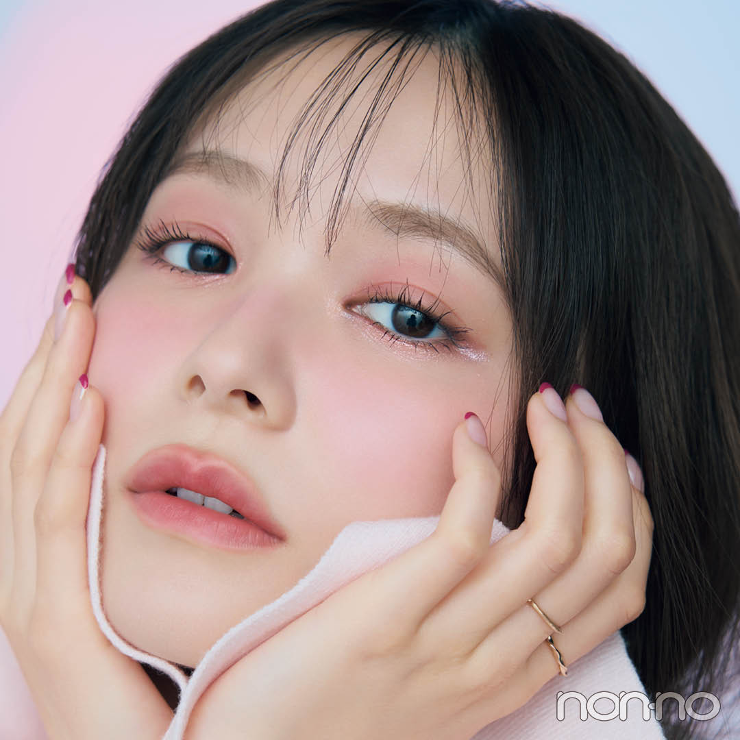 「特に意識しているのは化粧水の量。少なくとも3回は重ねづけするのがマイルールです。さらに、お風呂上がりはまずシートマスクをつけ、そのまま着替えや、ドライヤーを。コツコツ続けている日々のルーティンがちゅるほっぺにつながっているのかも♡」