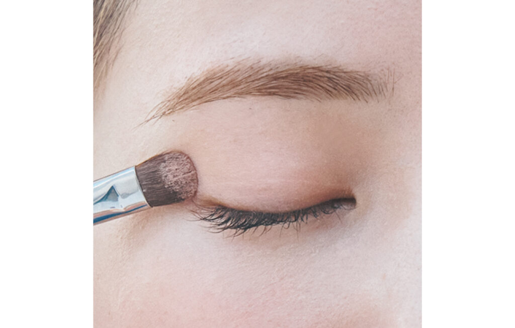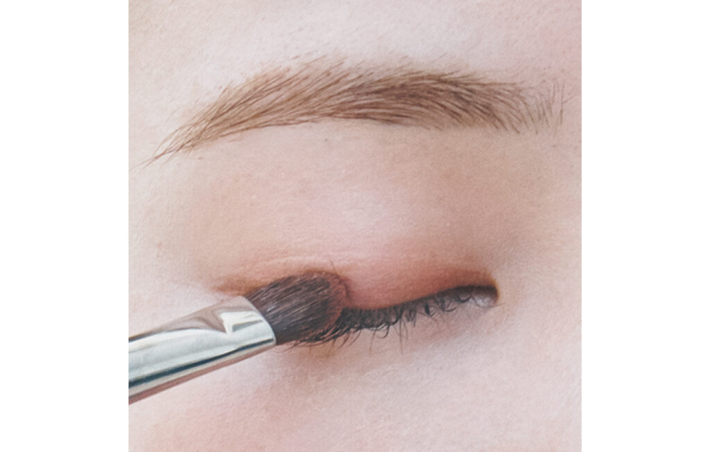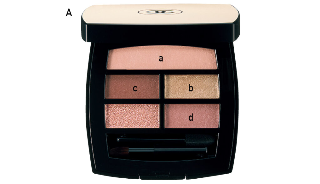 Aのdを取って、二重幅よりややオーバーめに塗り、目元に華やぎをプラス!