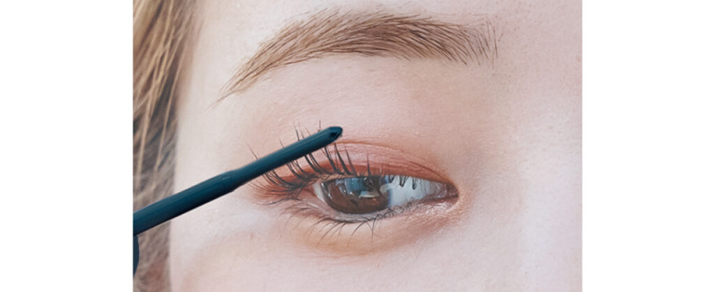 Cを上まつげに1度塗り。ボリュームは出さず、カール&ロング効果で洗練された仕上がりに。