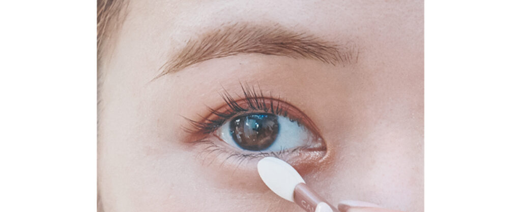 Bのeを、下まぶたの黒目幅から左右に少しはみ出るくらいのエリアに塗ってさりげない明るさに。