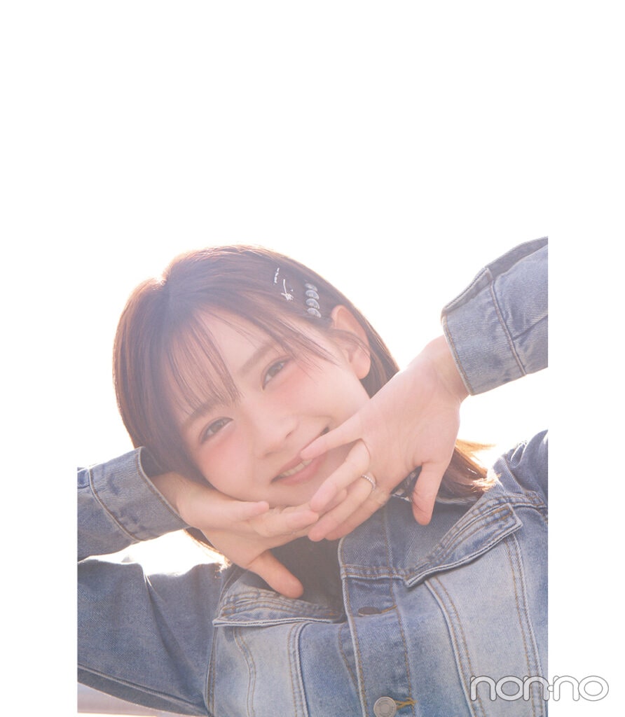 ジャケット¥18390/アダストリア(エーランド(アヴァンドレス)) トップス¥5990/Gap ヘアピン(ハート)¥5500/THE HAIR BAR TOKYO ヘアピン(4本セット)¥1320・リング(左手中指)¥2310/サンポークリエイト(アネモネ) リング(右手中指・左手人さし指)(各)¥4400/somnium
