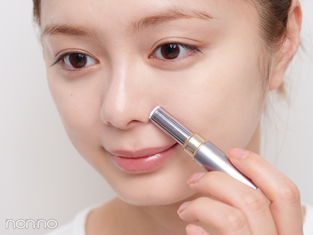 特に皮脂崩れしやすい小鼻や額などに。直接塗って指でトントンなじませ、テカリに先手を打って。