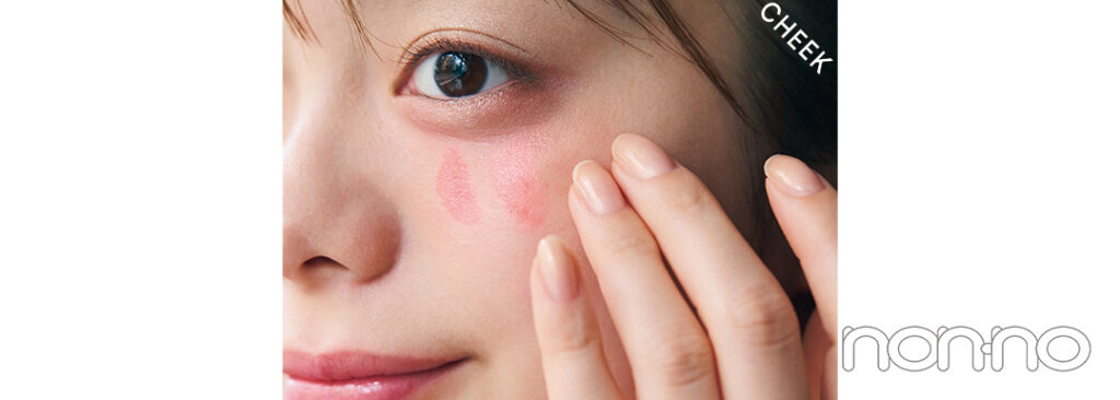 今日は話題のカフェに朝活で集合! 爽やかな朝に似合うナチュラルな盛り感と、眠たくっても簡単に可愛くキマるメイクが理想。チークとリップをマルチユースなアイテム一品でそろえて、明るいコーラルの血色を手軽にプラス。眉も淡いピンクで優しげに色づけて、自然な抜け感を出してみた♡