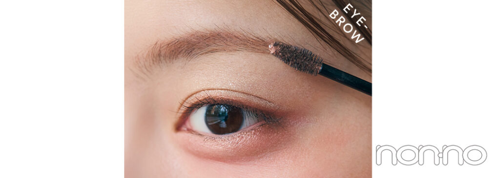 Aのaとbを混ぜて眉にふんわりとのせたら、Bを毛流れに沿ってとかすように色づける。