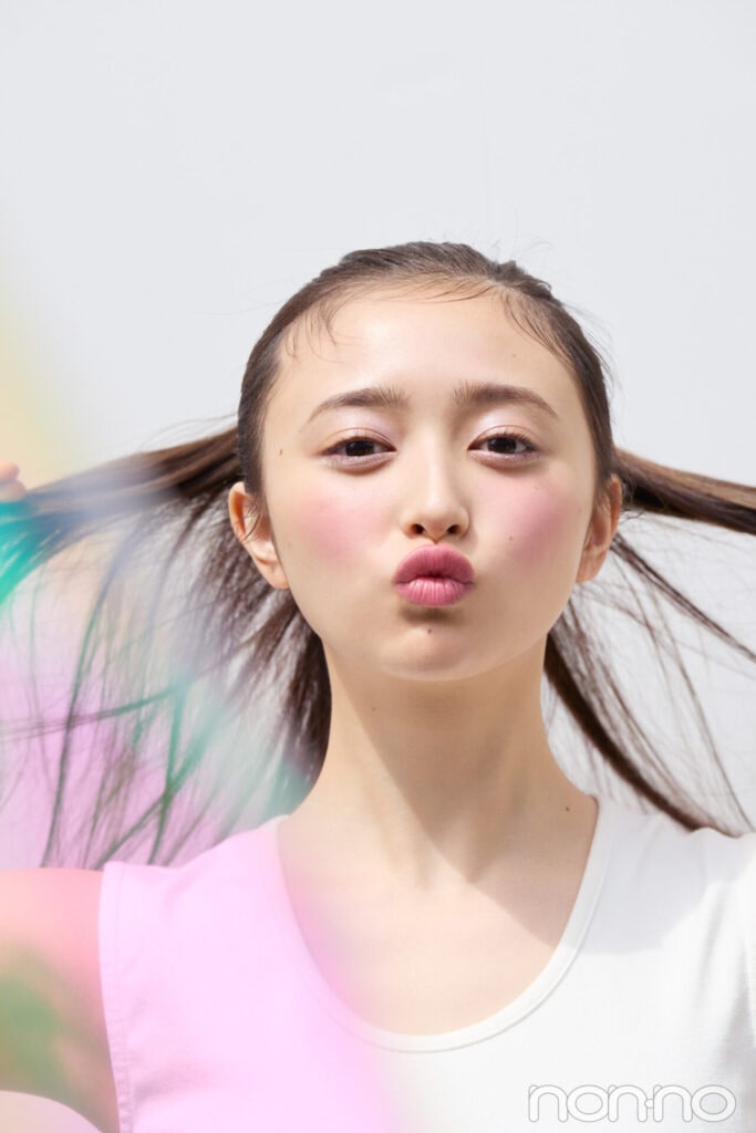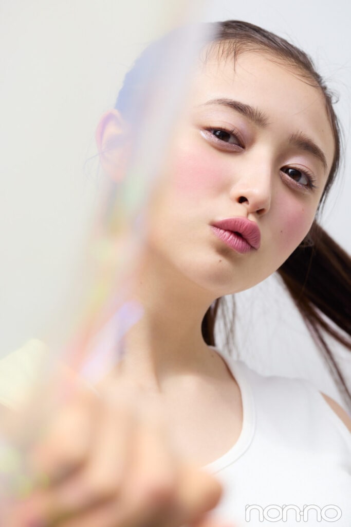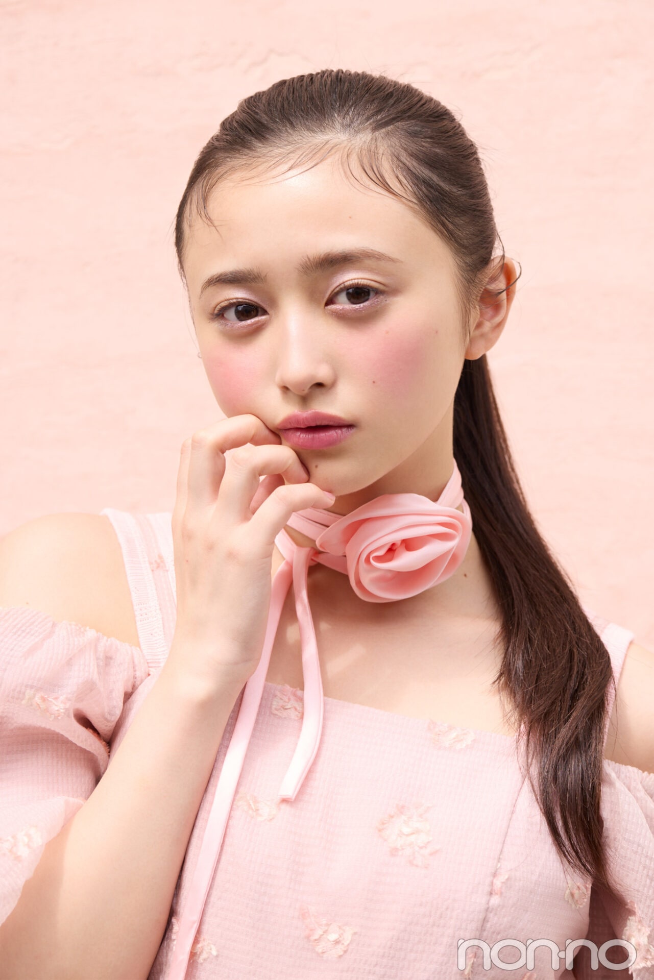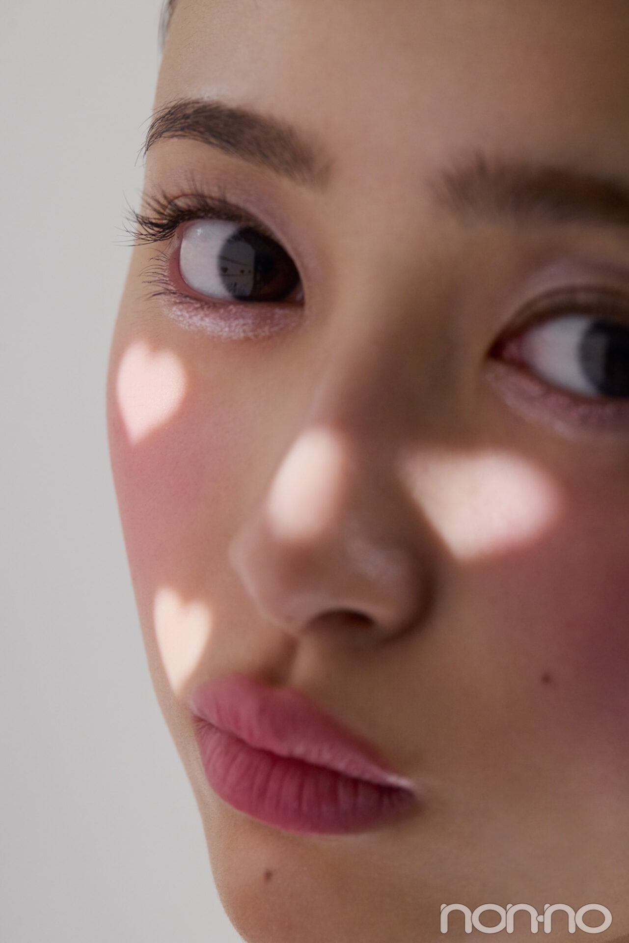 “井上和にしてほしいメイク”をnon-no読者に大募集! 特にリクエストの多かったメイクを全5回にわたってお届けします。第2回目は女のコの夢をカタチにしたようなアイドルメイク。甘く可愛いけれどトゥーマッチにならない、ピンクの入れ方やグリッター使いを参考にして。