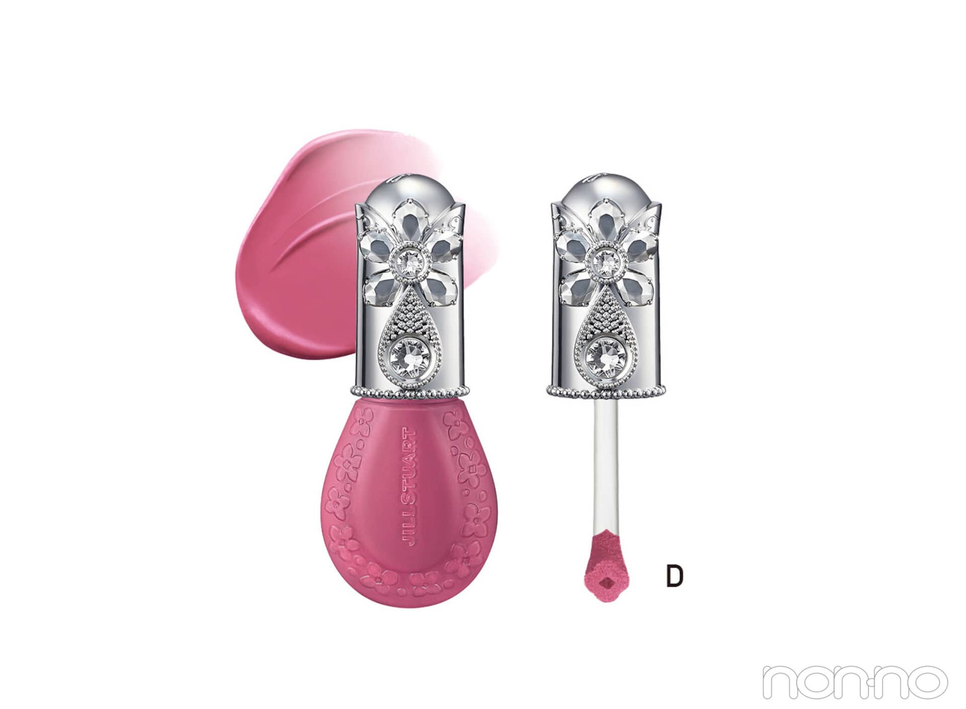 D リキッドが肌の上で“ほわっ”とした質感に変化。頬と唇の両方を優しく彩るカシスピンク。ブルームドロップ リップ&チーク シフォン 10 ¥3300/ジルスチュアート ビューティ