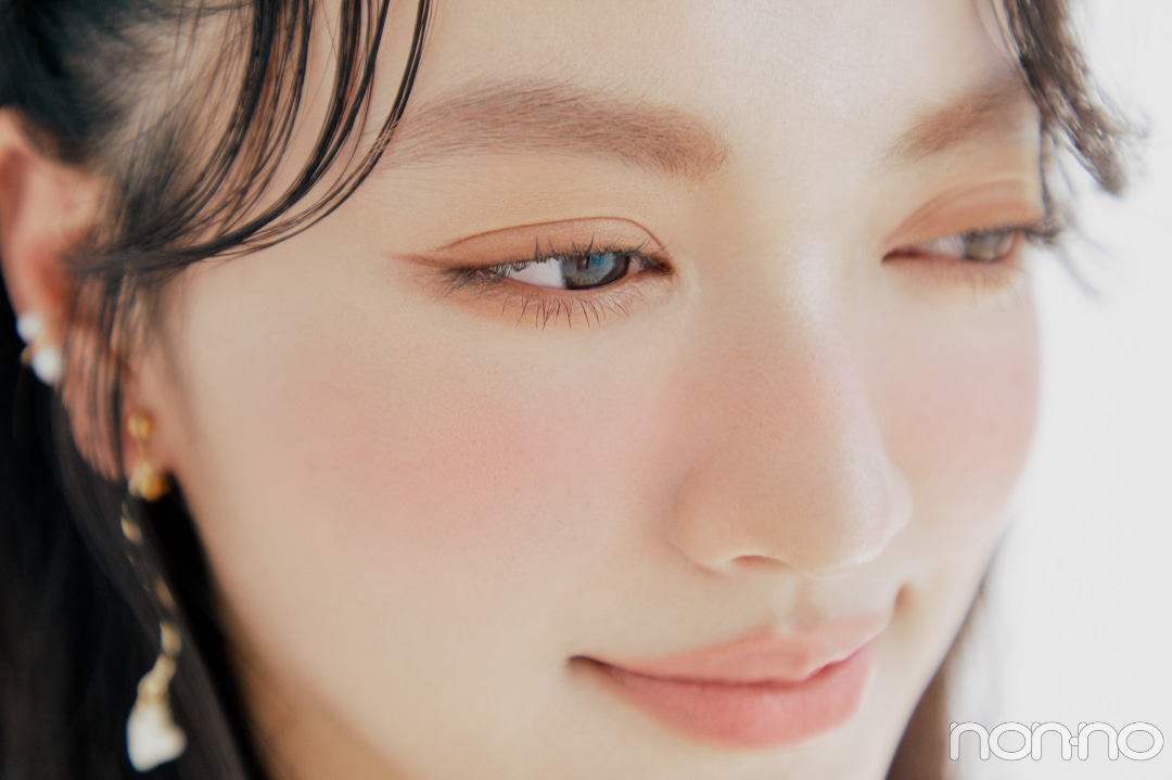 柔らかいイメージが特徴のイエベ春さんは、夏の太陽を思わせるオレンジベージュの日焼け風チークを両頬から鼻筋にかけてのせ、キュートかつヘルシーに仕上げてみて。目元&唇も明るいトーンの同系色で統一し、くすみを払拭しながら、パール感や陰影で立体感を演出するのがおすすめです。