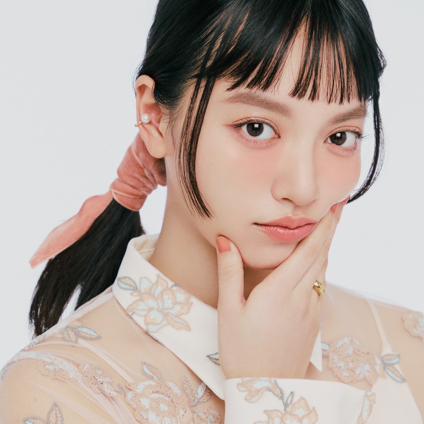 イエベ秋さんには、上品な魅力を倍増させてくれるブラウンメイクがおすすめ。秋冬と差をつけるため、目元には柔らかなトーンのブラウンベージュやパールたっぷりの輝き質感をチョイス。強い締め色で凛々しく仕上げるのではなく、アイラインの部分使いやマスカラの色味で引き算すると春らしく軽やかさのあるバランスに