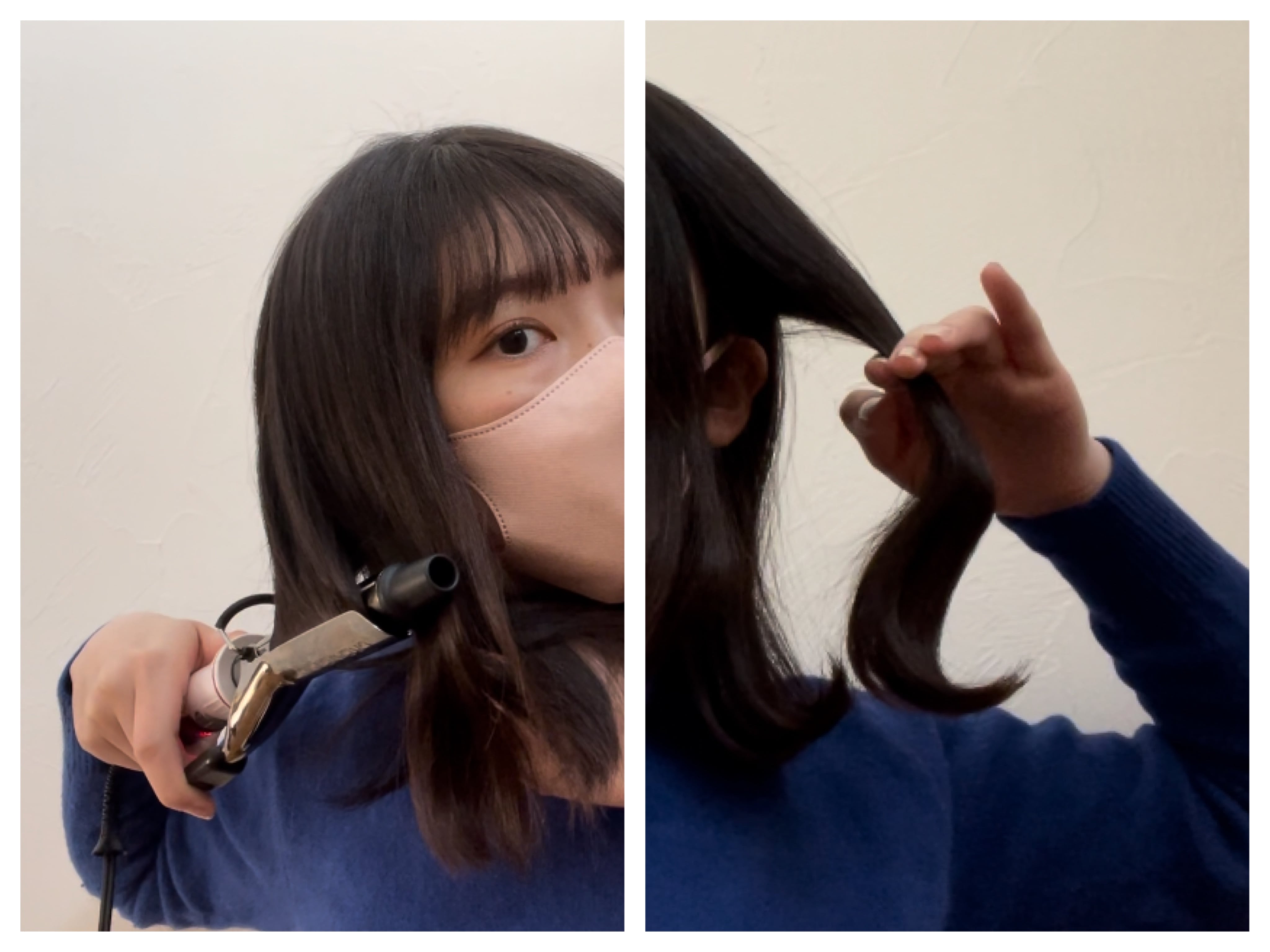 わたしは先に内巻きに、毛先だけ少しだけ外ハネにして、ゆるやかなS字をつくりました。