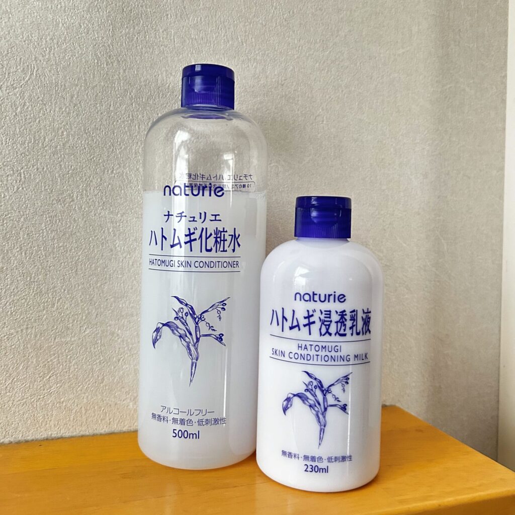 ナチュリエから発売されている【ハトムギ化粧水】【ハトムギ浸透乳液】【ハトムギ保湿ジェル】の3つです!!