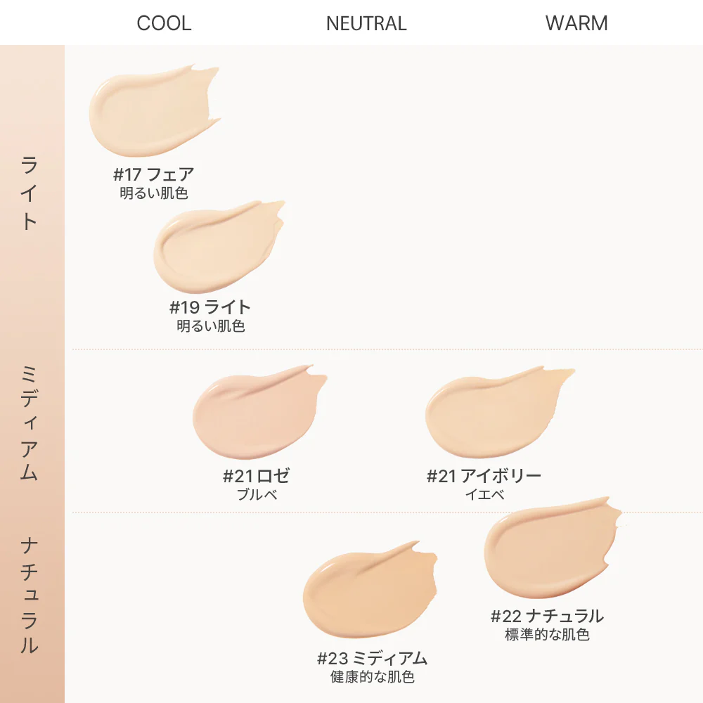 カラーは #19 ライト 明るい肌色を使用しています。水に濡らしたパフで薄く広げると、厚塗り感がなく自然な仕上がりにすることができました!