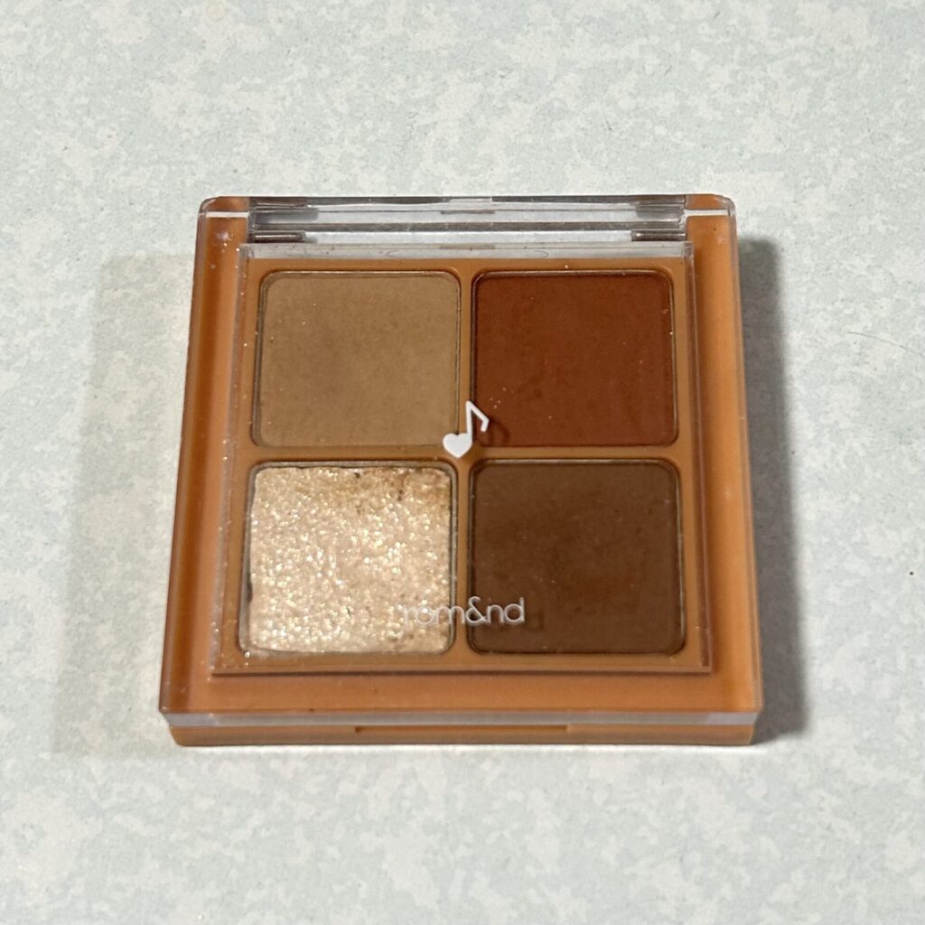 まずご紹介するのはrom&ndのアイシャドウで、税込およそ1,360円。私はブラウン系カラーが特徴的な【M01 ドライアップルブロッサム】を使っています!