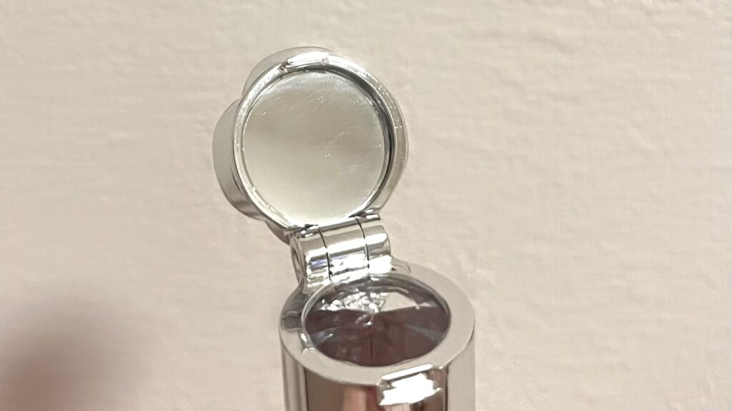 キャップの上部分を開けると小さな鏡がついているので、わざわざ鏡を出す必要がなく、このリップのみで完結できるのがとっても便利!