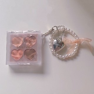 ミルフィーといえば、モネ、ゴッホなどの有名絵画をモチーフにしたパレットなどとにかくパッケージがユニークなコスメの多いブランドです!今回ご紹介するぷくぷく涙袋パレットにも、ハート型チャームやリボンが付いていてとっても可愛いです!また、小さいのでポーチの中に入れておきたいひとつです。