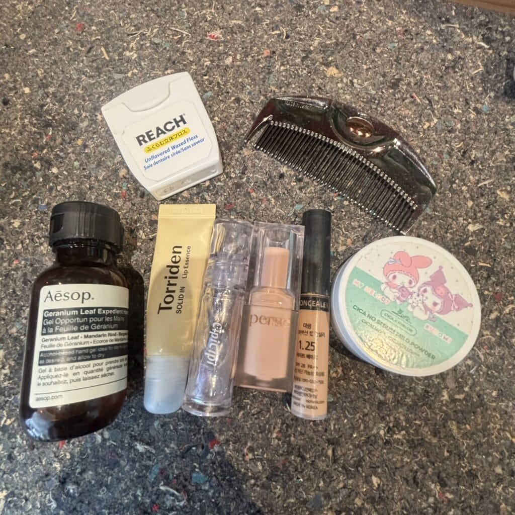 REACHのフロス。私は矯正しているのもあって歯に詰まりやすいので、意識して持ち歩いています。 - コーム (右上)