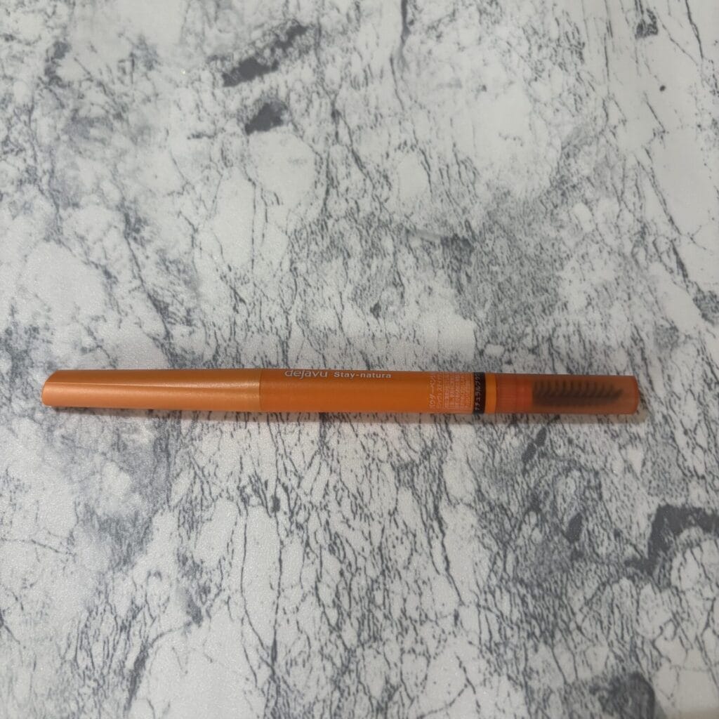 パウダーペンシルアイブロウのdéjà vu様の推しポイントは右の写真に分かるように楕円型の芯だそうです!まずは楕円の角の部分を使って眉山から眉尻を描いて、次に残りを太い部分を使って描くのがおすすめの使い方だそうです!このペンシルアイブロウには逆側にスクリューブラシが付いているのが私は嬉しいと思いました!