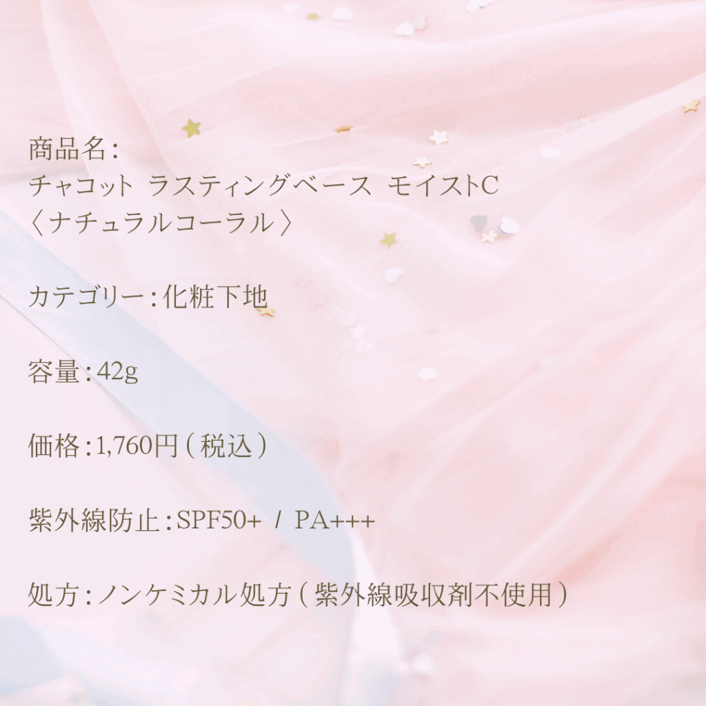 今回私が購入したのは、チャコット「ラスティングベース モイストC」のナチュラルコーラル!