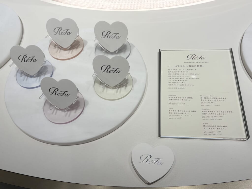 「ReFa HEART BRUSH」の5つのカラーをコンセプトにしており、多幸感やときめきを感じられ、心浮き立つようなフレグランスとなっていました。