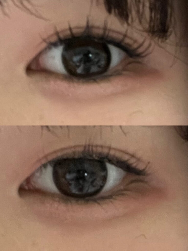 この目力の違いが凄すぎる!!セパレートと束感が綺麗でナチュラル!つけるのもしっかり鏡を見て根元に合わせられれば簡単でした♪私は1か月半に1度まつ毛パーマに行っているのですが、1か月くらいたつとまつ毛がバラバラし始めてしまうので手軽に束間まつ毛にできるのはとてもうれしいです!時短メイクにもなるかも!?