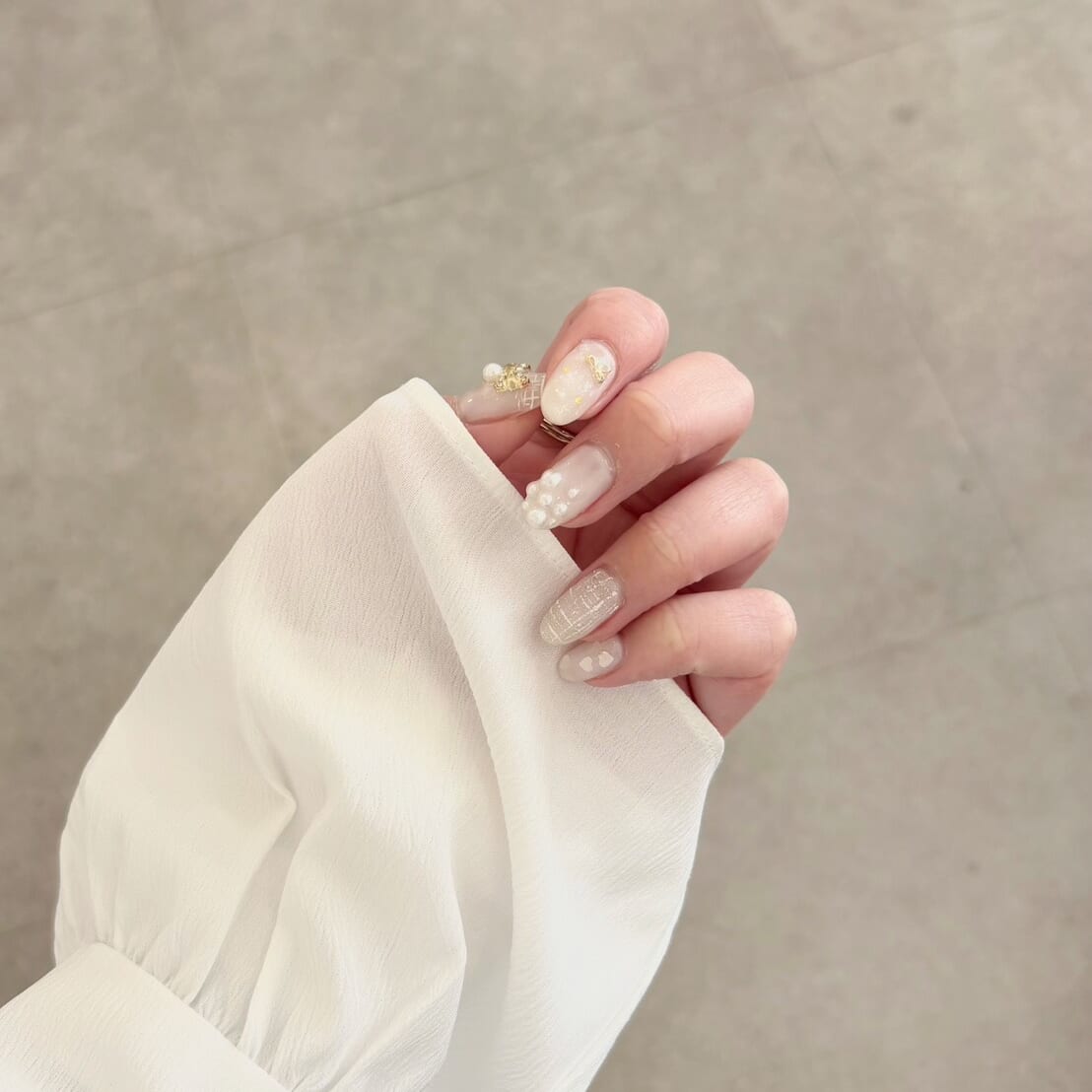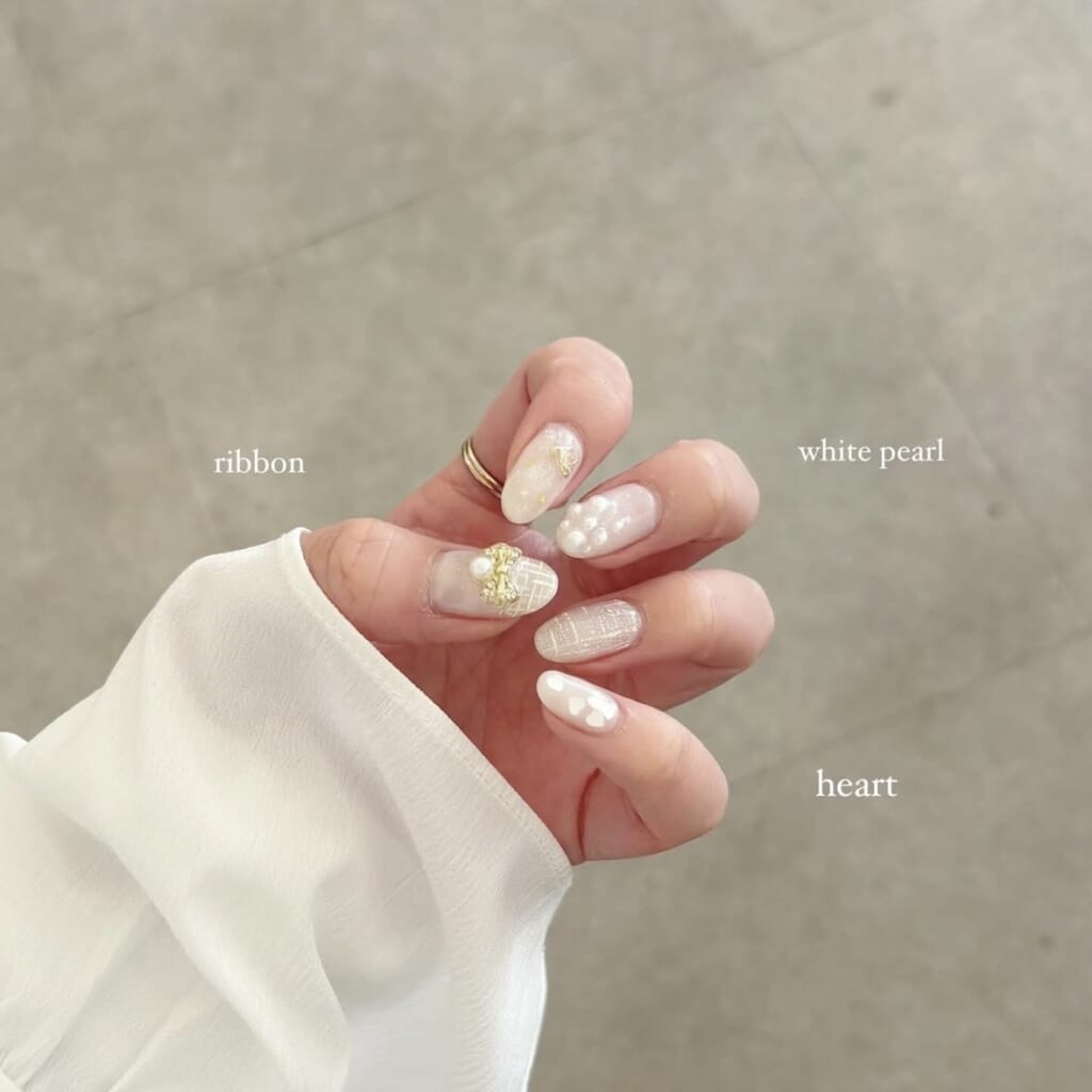 春っぽいホワイトカラー!パーツを少なくすると、派手にもならず、清楚な印象になるので、とてもおすすめです✨