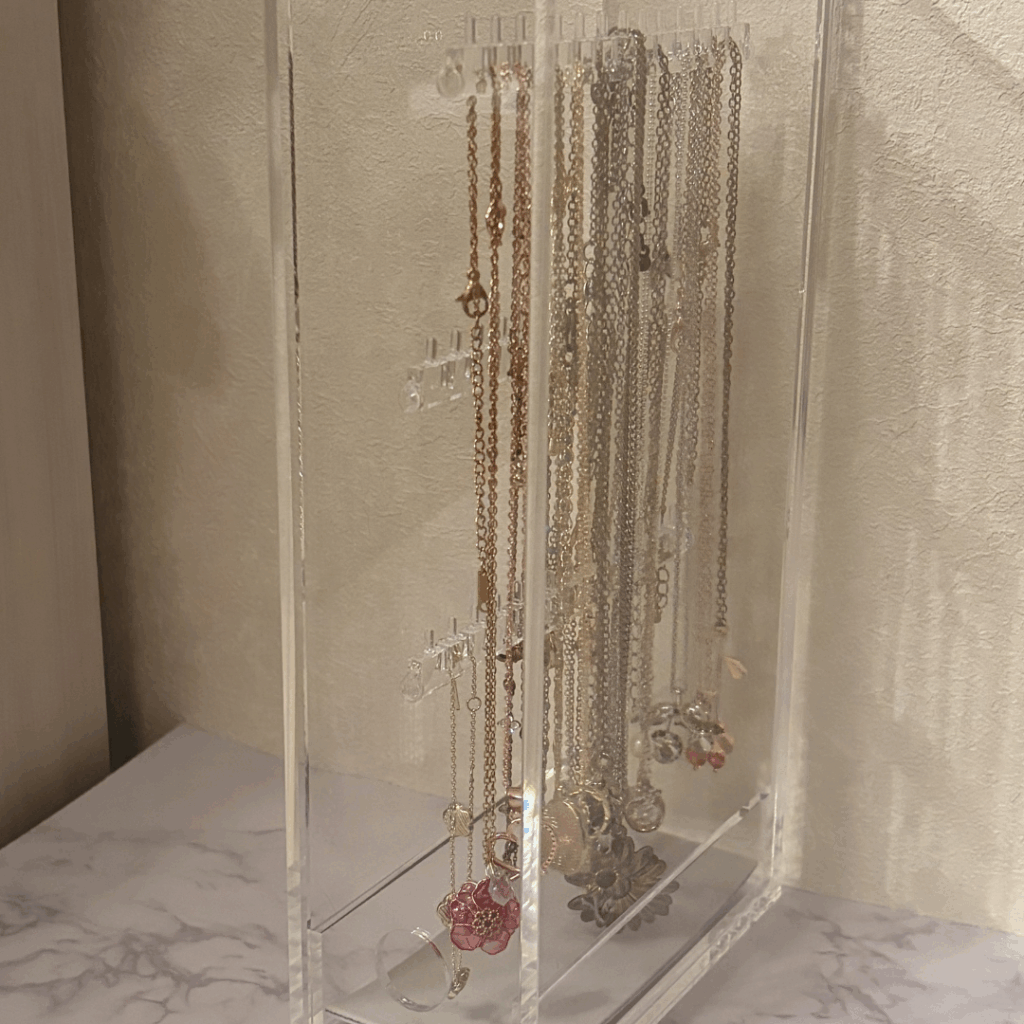 ネックレスやピアスをまとめて収納できるので、