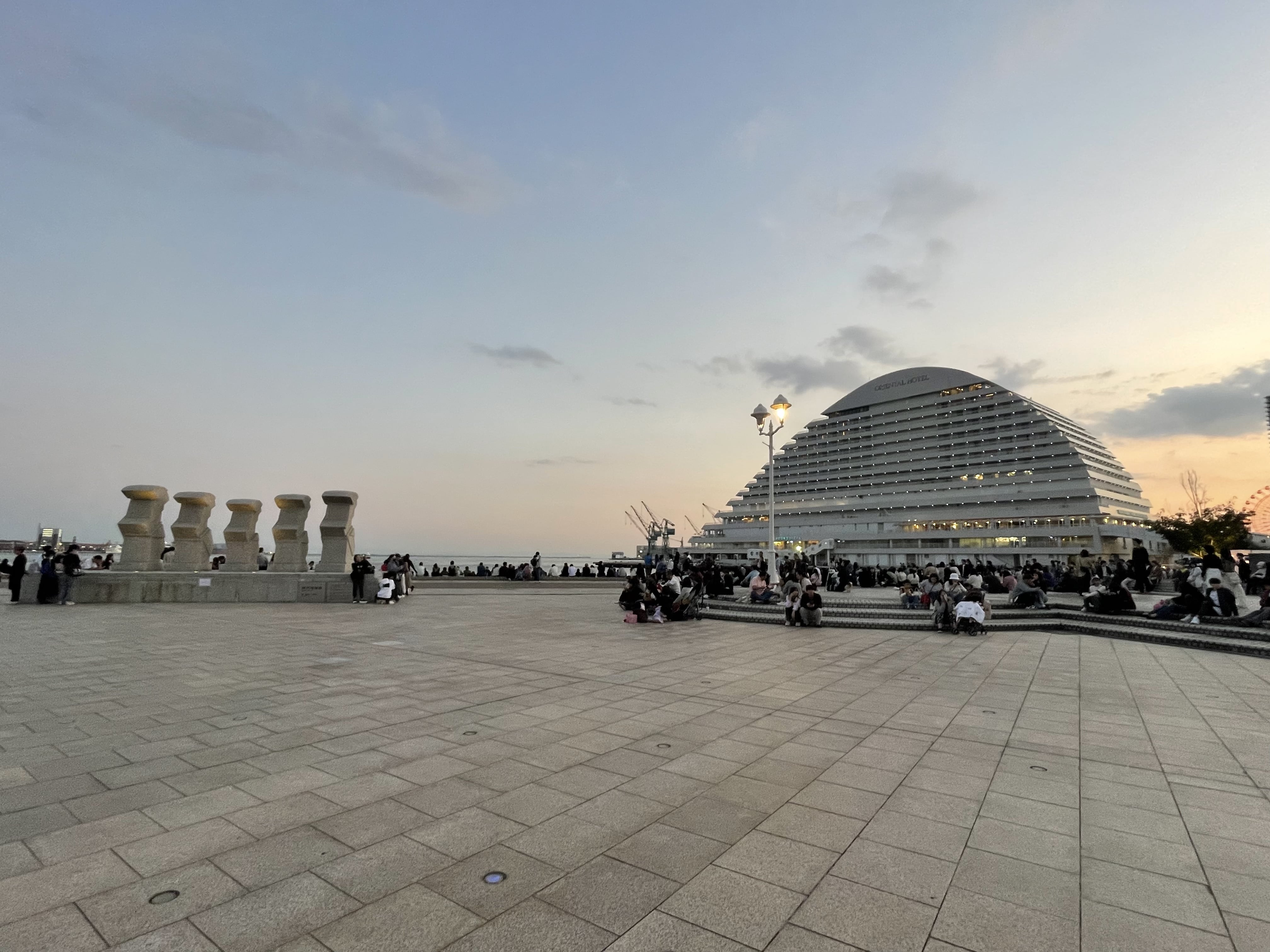 その花火を真正面から綺麗に見られる観覧エリアは、神戸海洋博物館の南側にある広場です。