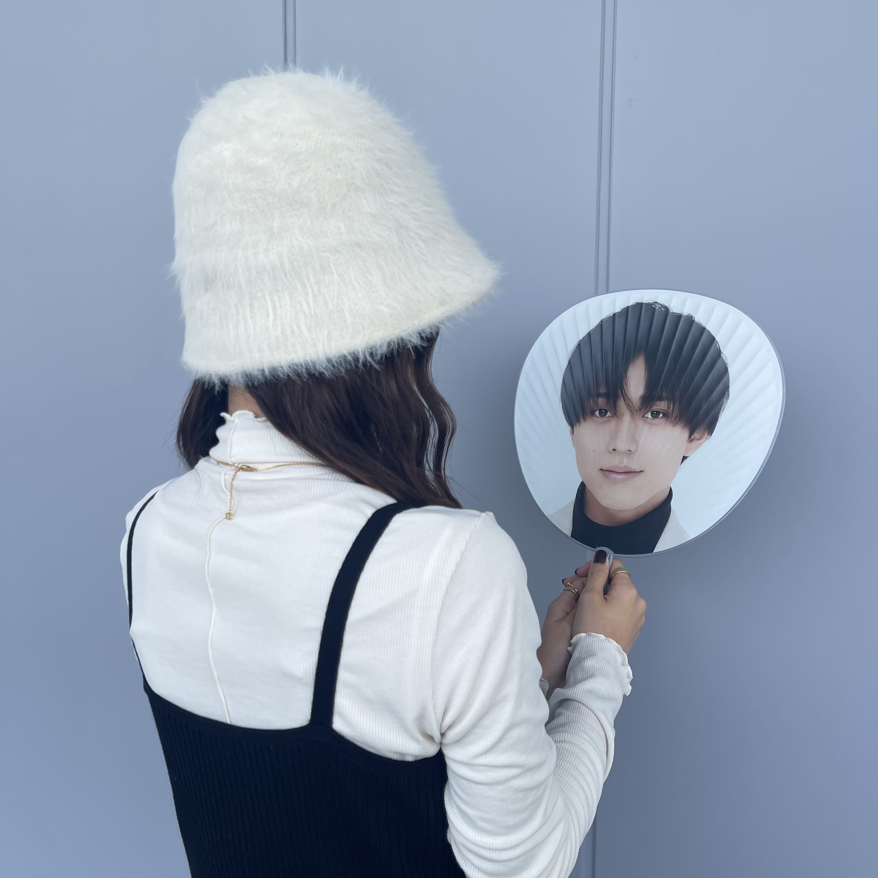 うちわで顔を隠すのはもはや定番!