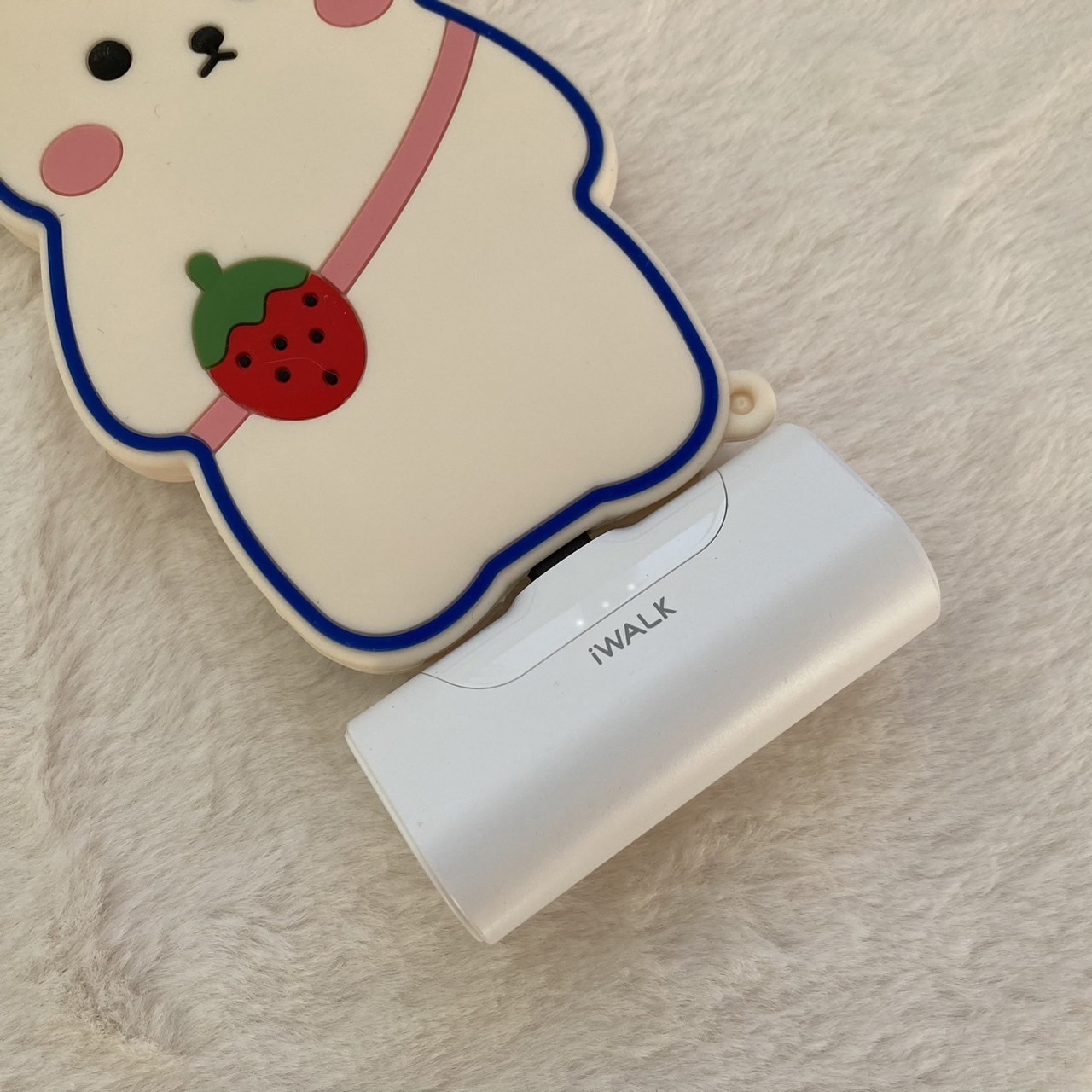 裏側にステッカーを挟めるものはもちろん、コンパクトな持ち充(iwalk)が差し込めるかどうかも含めレポ◎