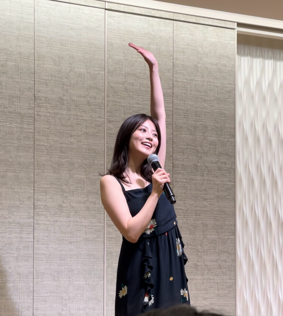 いつもイベントで司会を務めてくださる刈川くるみさんが登場し、イベントが始まりました!刈川アナは福岡県出身で、なんとみおちゃんの高校の後輩なんです🥹とってもかわいらしい方で、福岡には美人しかいないということを実感させられます😂