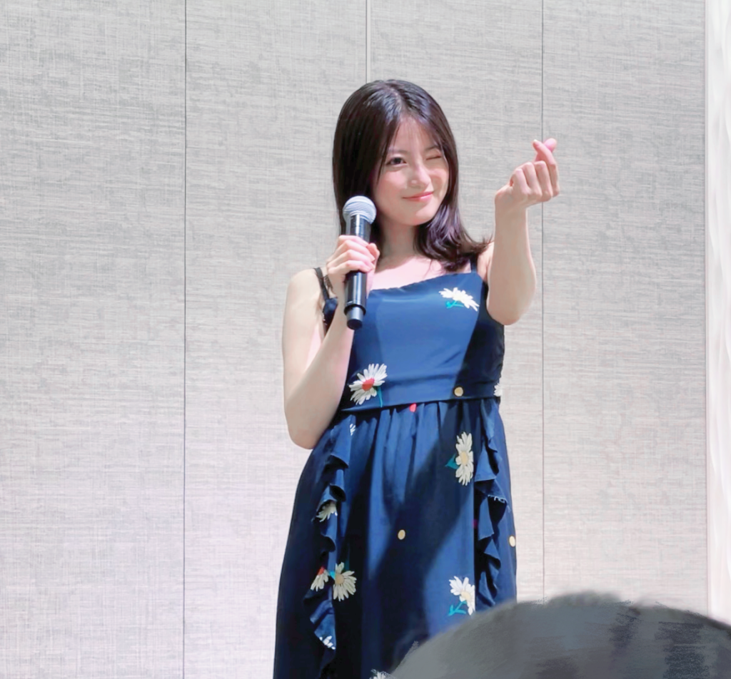 そして、ついにみなさんお待ちかねのみおちゃんが登場❣️前髪はセンターわけで、セミロングほどまで髪の毛を切ったみおちゃんは、まさに女神でした……♡とてつもなく小さいお顔に全てのパーツが凝縮していて、余白が本当にない!あまりの美しさと会えた喜びで、泣いているファンの方もいました😭