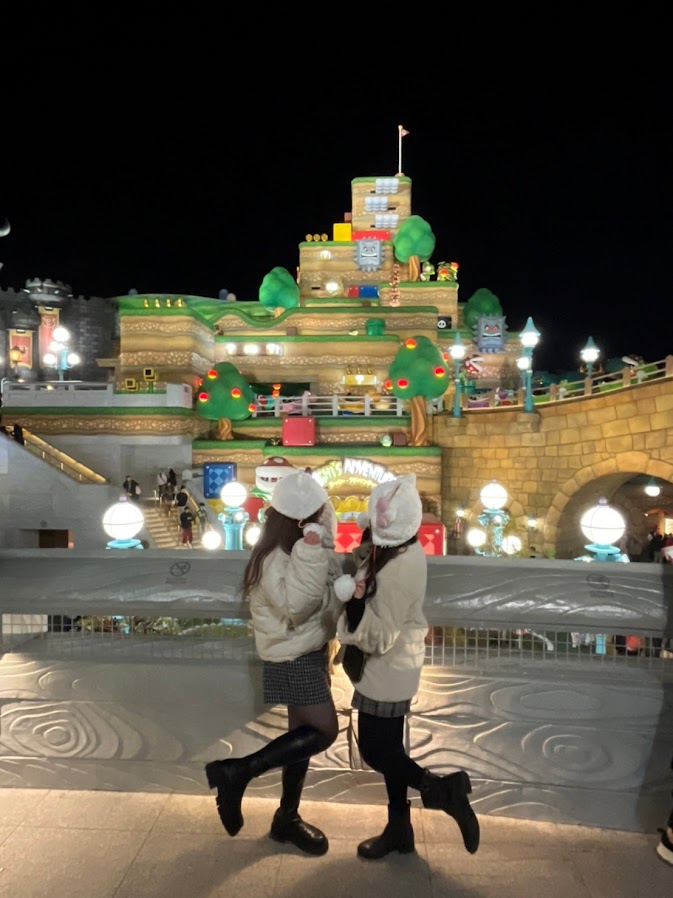 ハリーポッターやフライングダイナソー、ジュラシックパークなどの絶叫系アトラクションに乗った後、マリオのコーナーに向かいました!